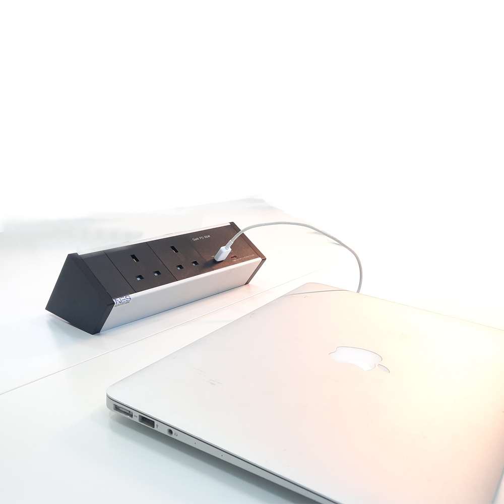 NES DESKPRO / SQ3 mit USB-C (65 WATT max). NEU und INNOVATIV: Nun kann ein USB/C Laptop mit bis zu 65 Watt geladen werden.  Designed für die moderne Generation der USB-C Laptops.