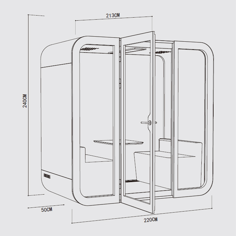 1 B-class soundproong 2–4 Seater Meeting Pod. Sound Operating Space: