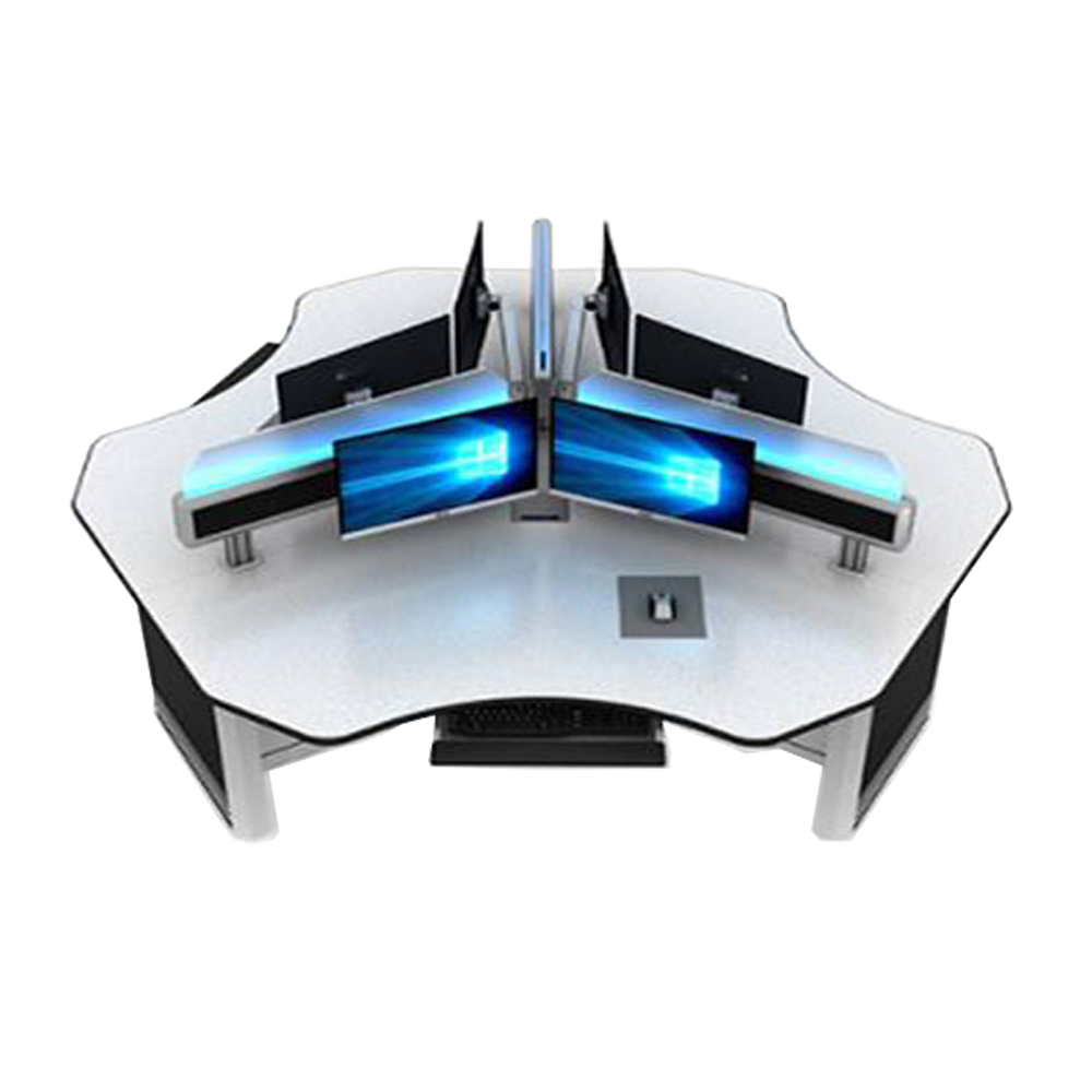 Die NK/T22 Serie ist ein ergonomisch optimiertes Leitstand Tischsystem (3, 4 User) . Der Kontrollraumtisch besteht aus eloxierten Aluminiumkomponenten und einer Stahlstruktur.
